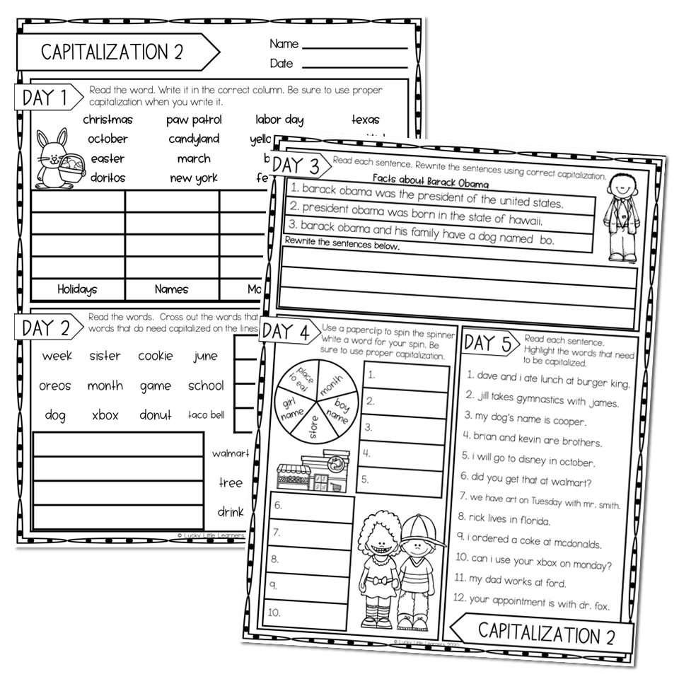 2nd Grade Grammar Worksheets Capitalization 2 Lucky Little