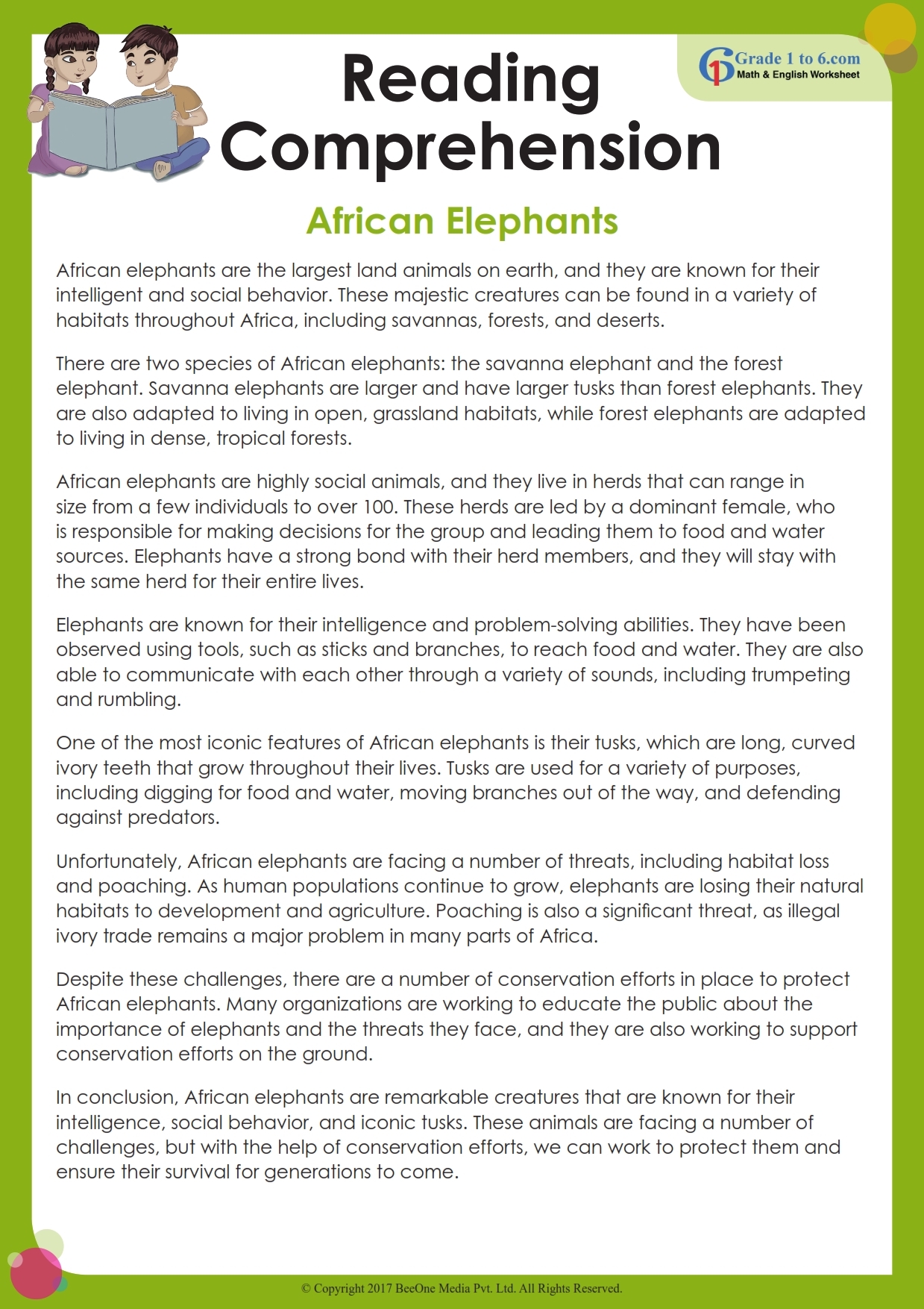 6th Grade Reading Comprehension Grade1to6
