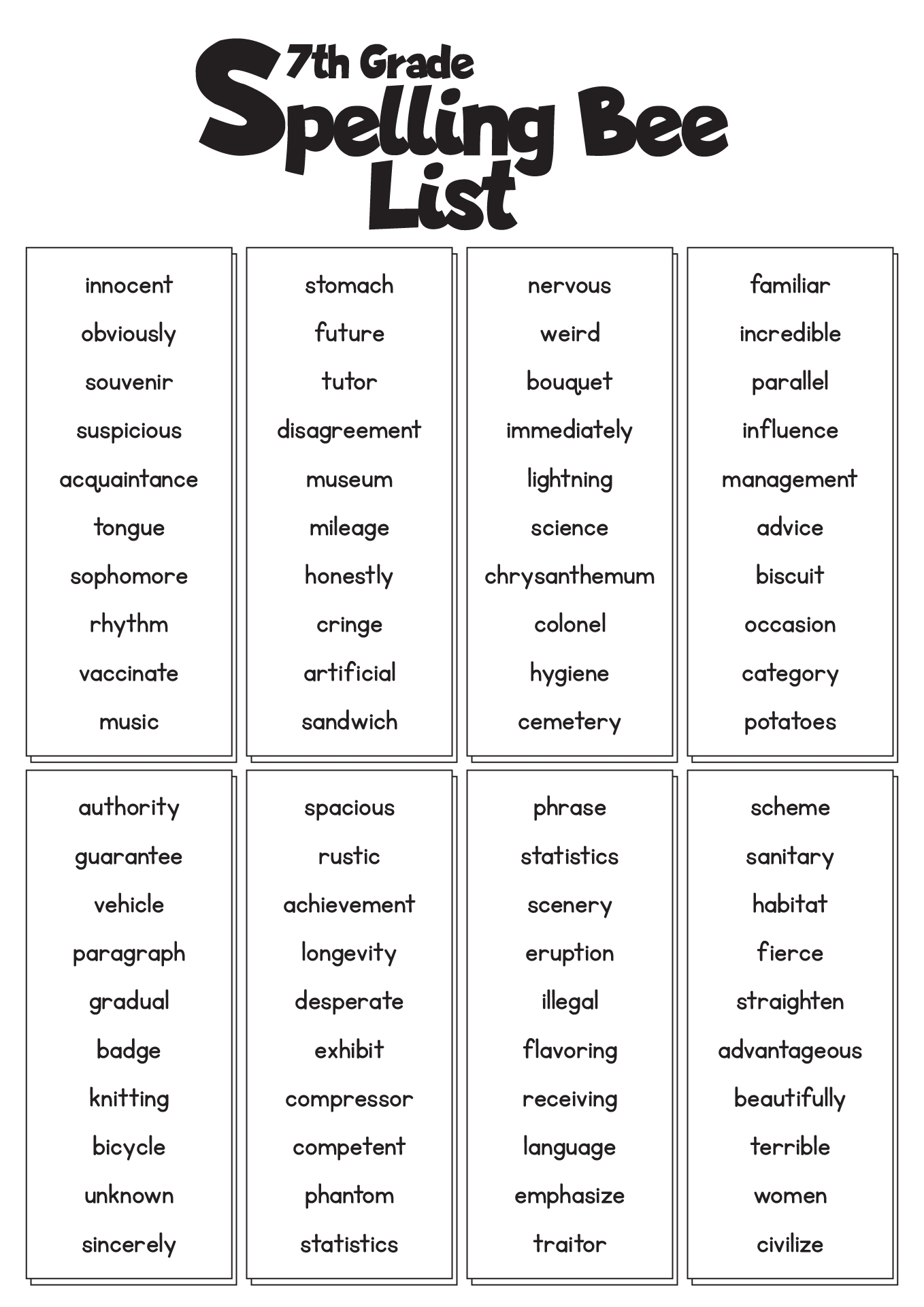 7Th Grade Spelling Worksheets Free Printable