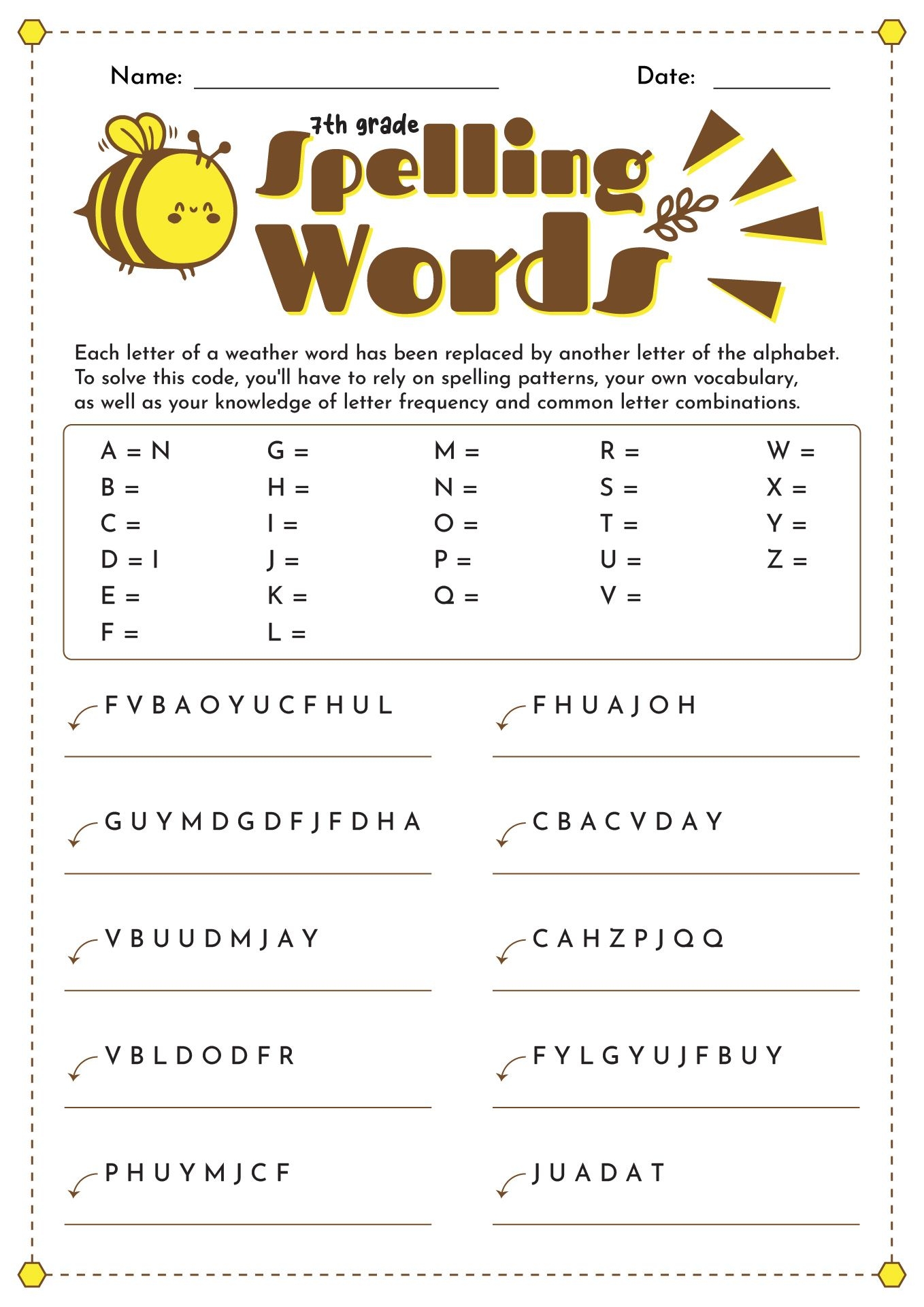 Our free printable 7th-grade spelling worksheets are perfect for parents and teachers looking to supplement their child’s learning at home or in the classroom. With a variety of activities to choose from, your child will never get bored of practicing spelling.