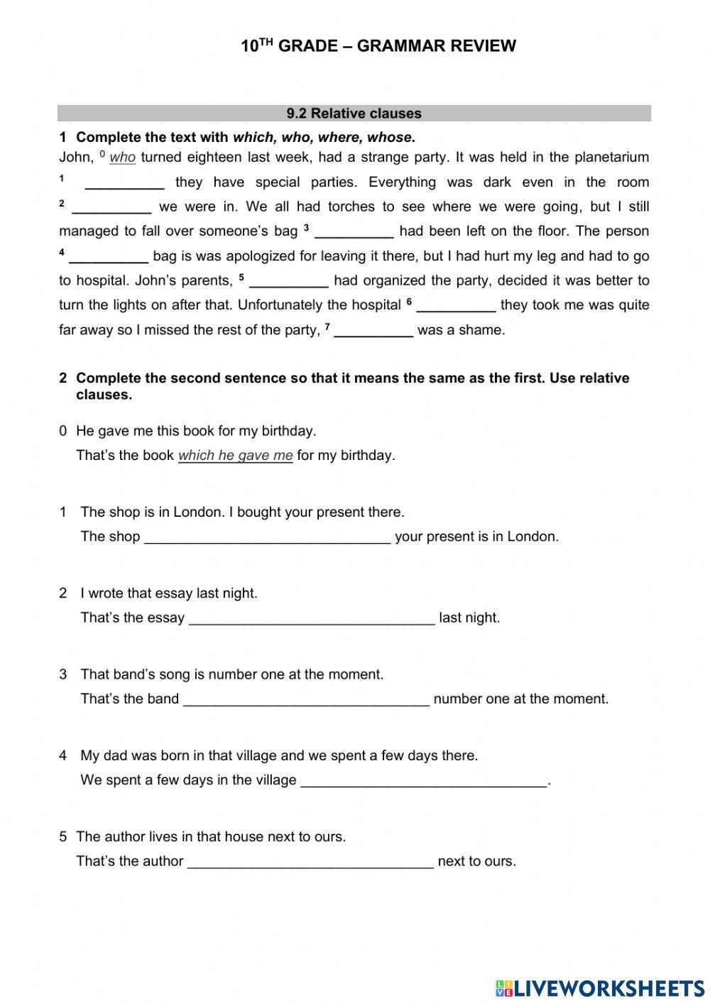 10th Grade Grammar Review Worksheet Live Worksheets Worksheets Library