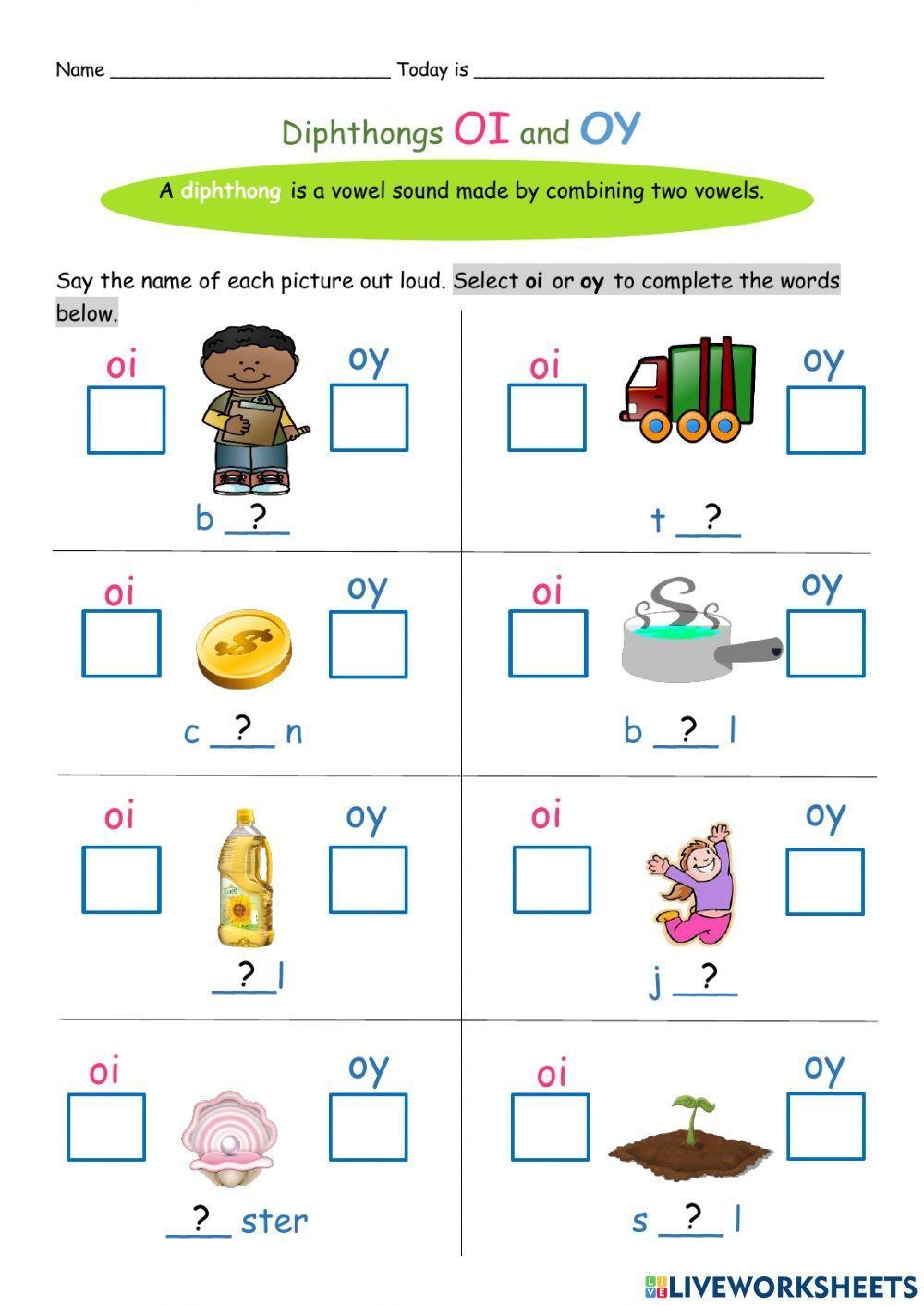 Diphthong oi oy Worksheet Phonics Worksheet Live Worksheets Worksheets Library