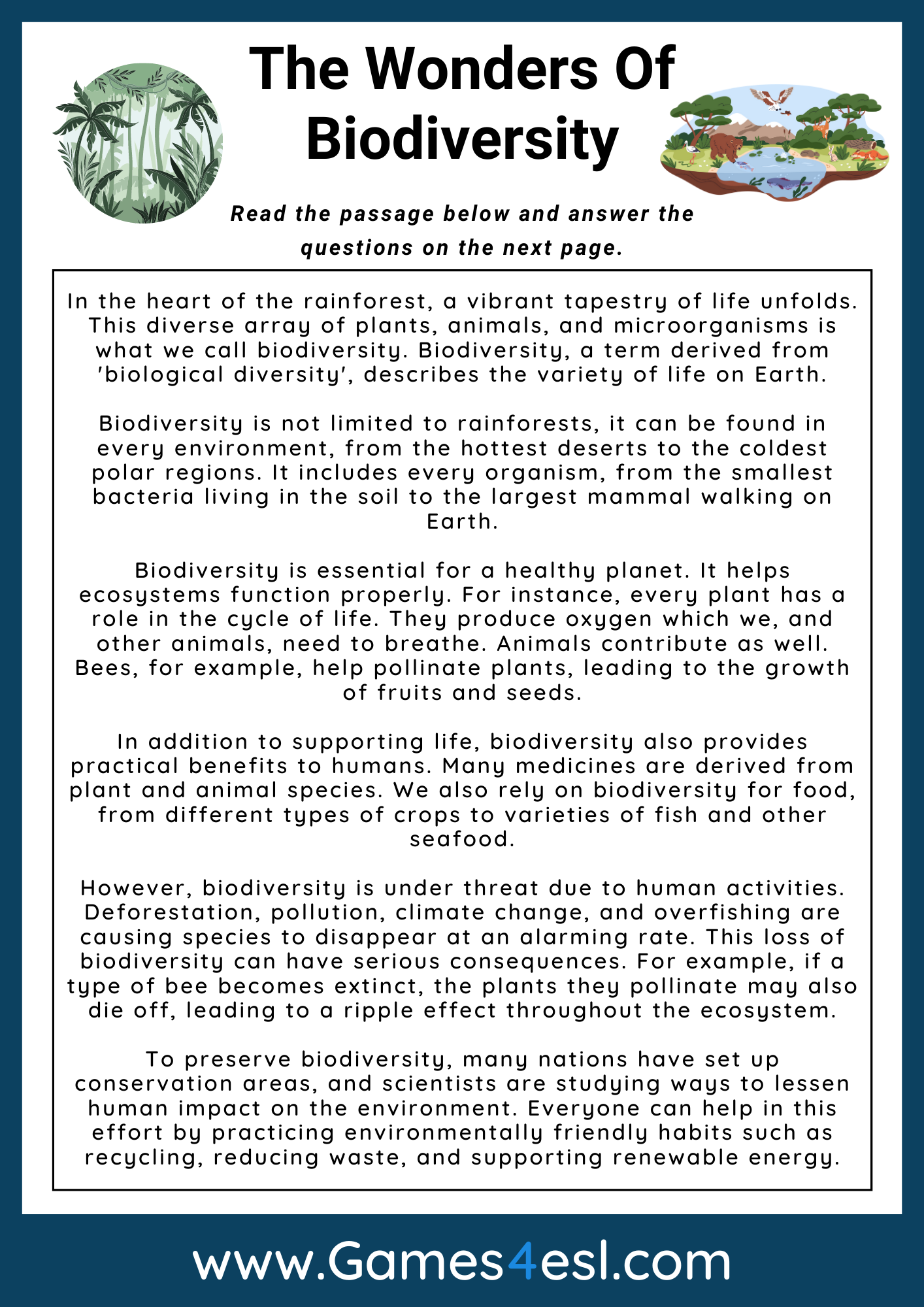 Biodiversity ESL Worksheet By Ms Pint