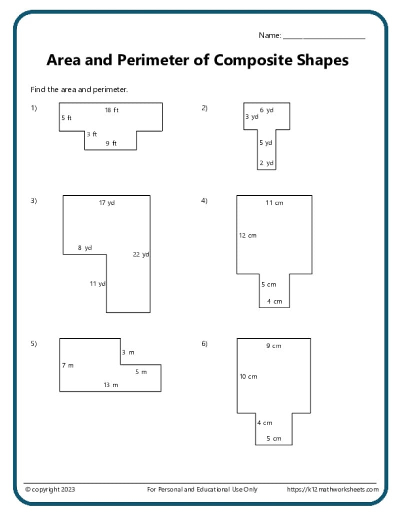 Area And Perimeter Of Composite Shapes K12 Math Worksheets
