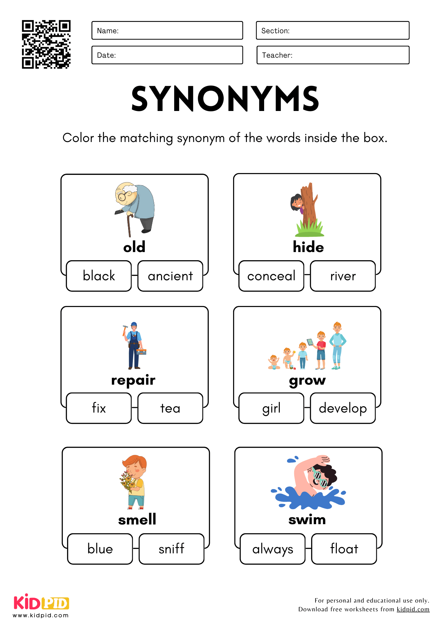 These worksheets are designed to make learning synonyms easy and enjoyable for kids. With colorful images and simple exercises, your students will have a blast expanding their vocabulary while mastering this important language skill.