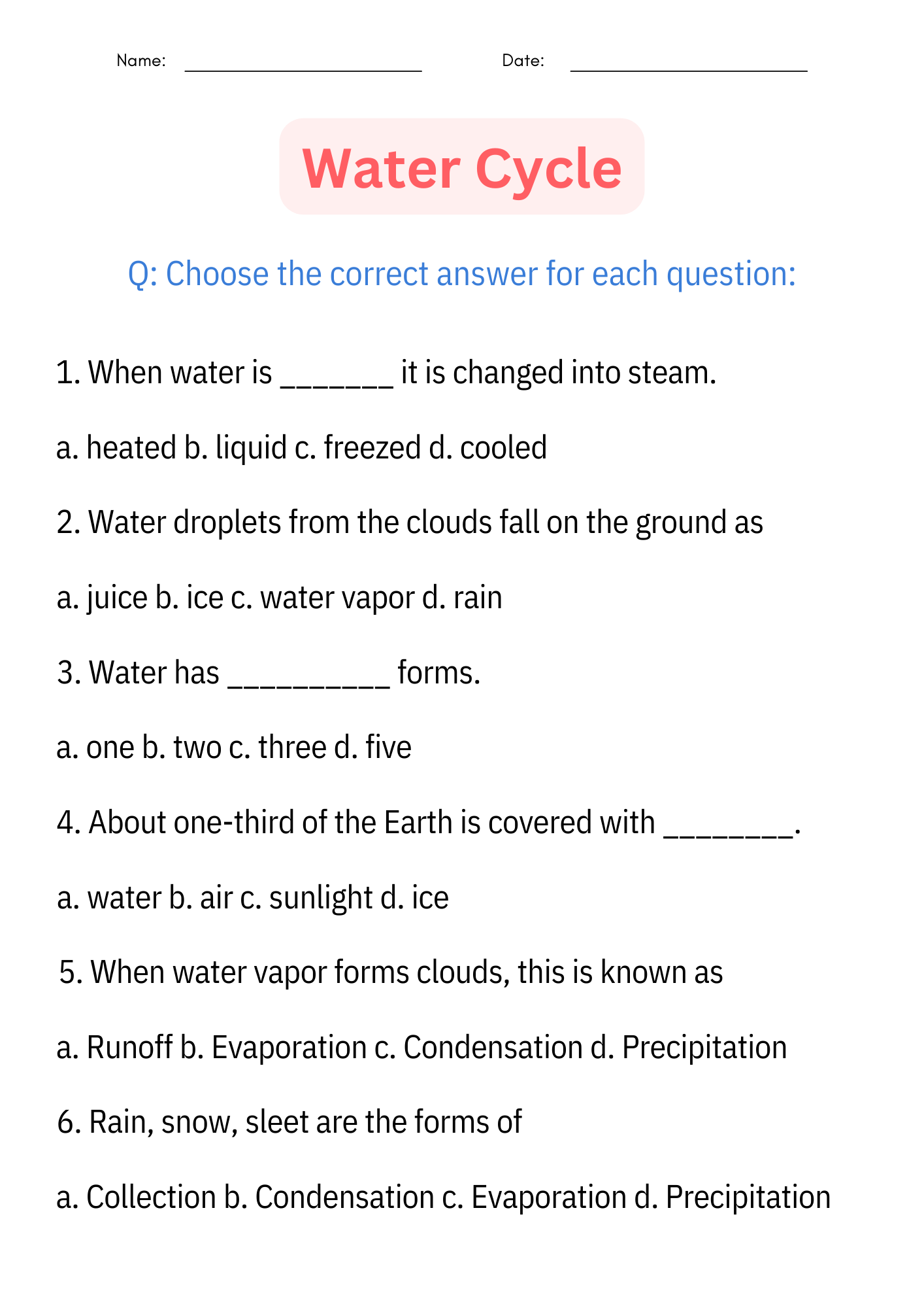 Printable Diagram Science Water Cycle Worksheet And Activities For Grade 1 2 3